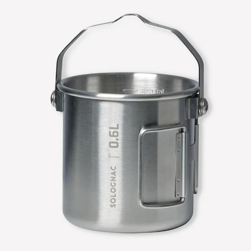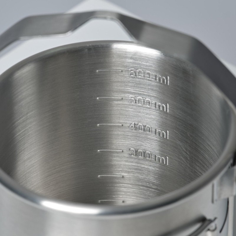 این لیوان با ظرفیت 0.6 لیتر از استیل ضدزنگ نوع 316 (یا همان 18/10) ساخته شده که مقاومت بالایی در برابر آتش و ضربه دارد. بنابراین میتوانید آن را مستقیماً روی شعله آتش قرار دهید و برای جوشاندن آب یا گرمکردن غذا استفاده کنید.